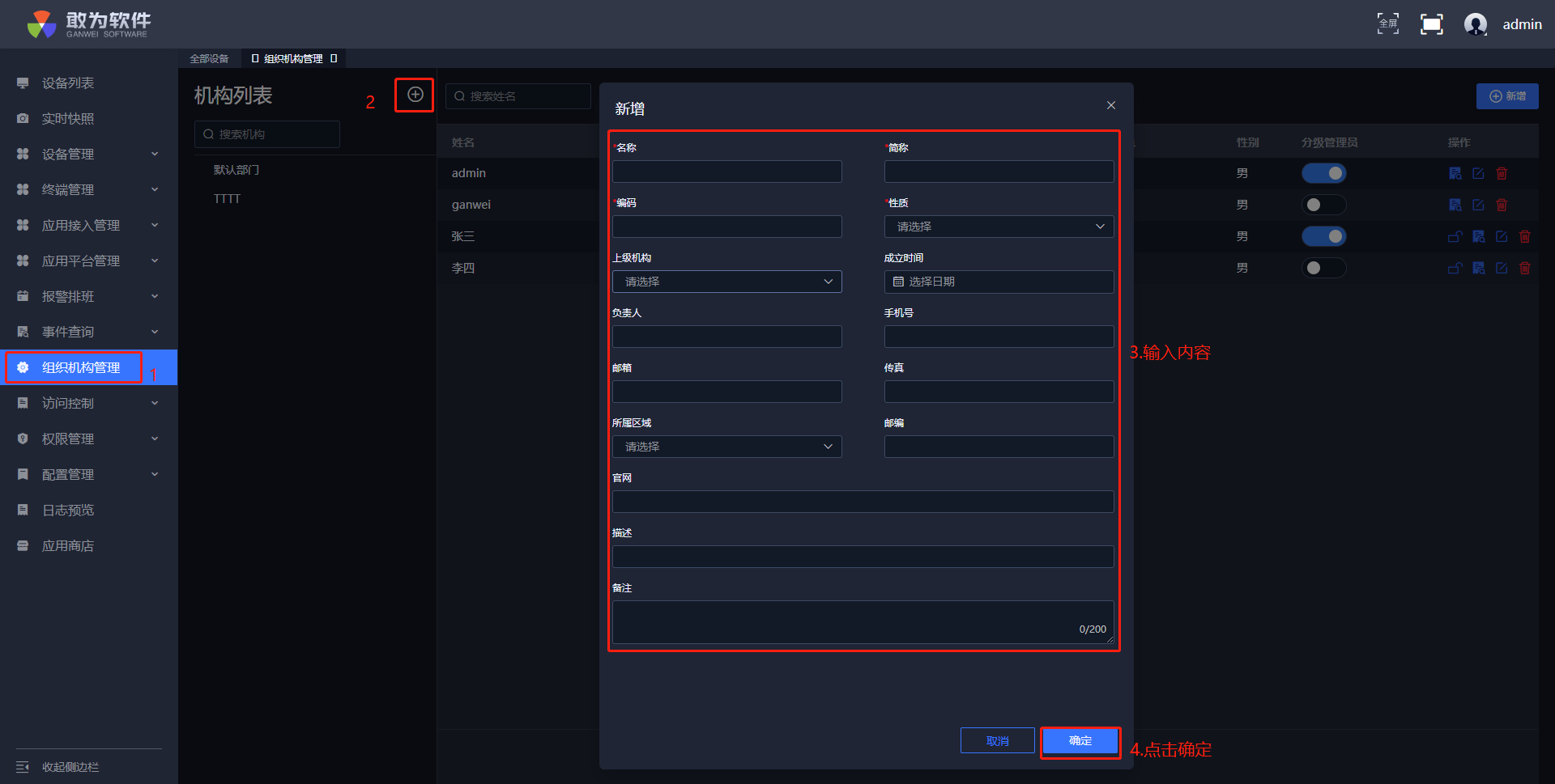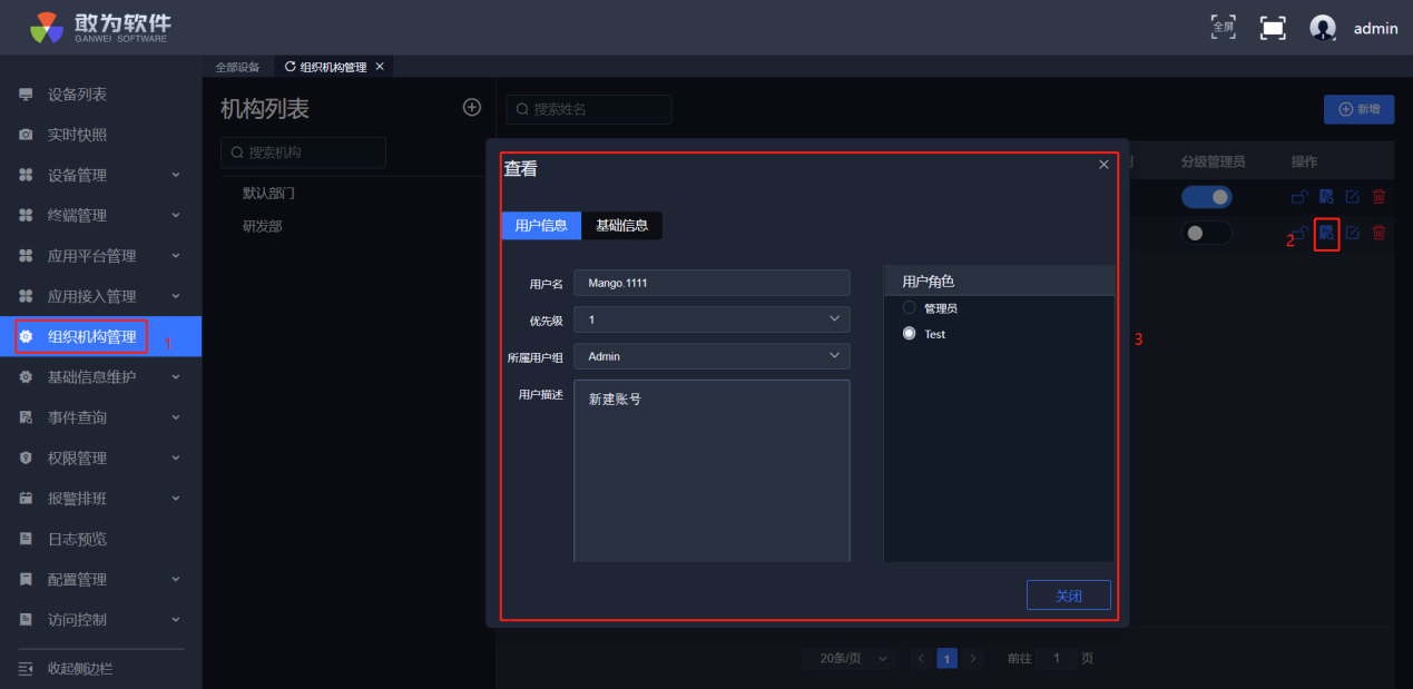 | 5 | 设置分级管理员 | 1、支持管理员设置分级管理员功能 2、分级管理员和普通用户不支持此功能 3、设置分级管理员后,分级管理员所属机构下所有人员角色与分级管理员一致 |