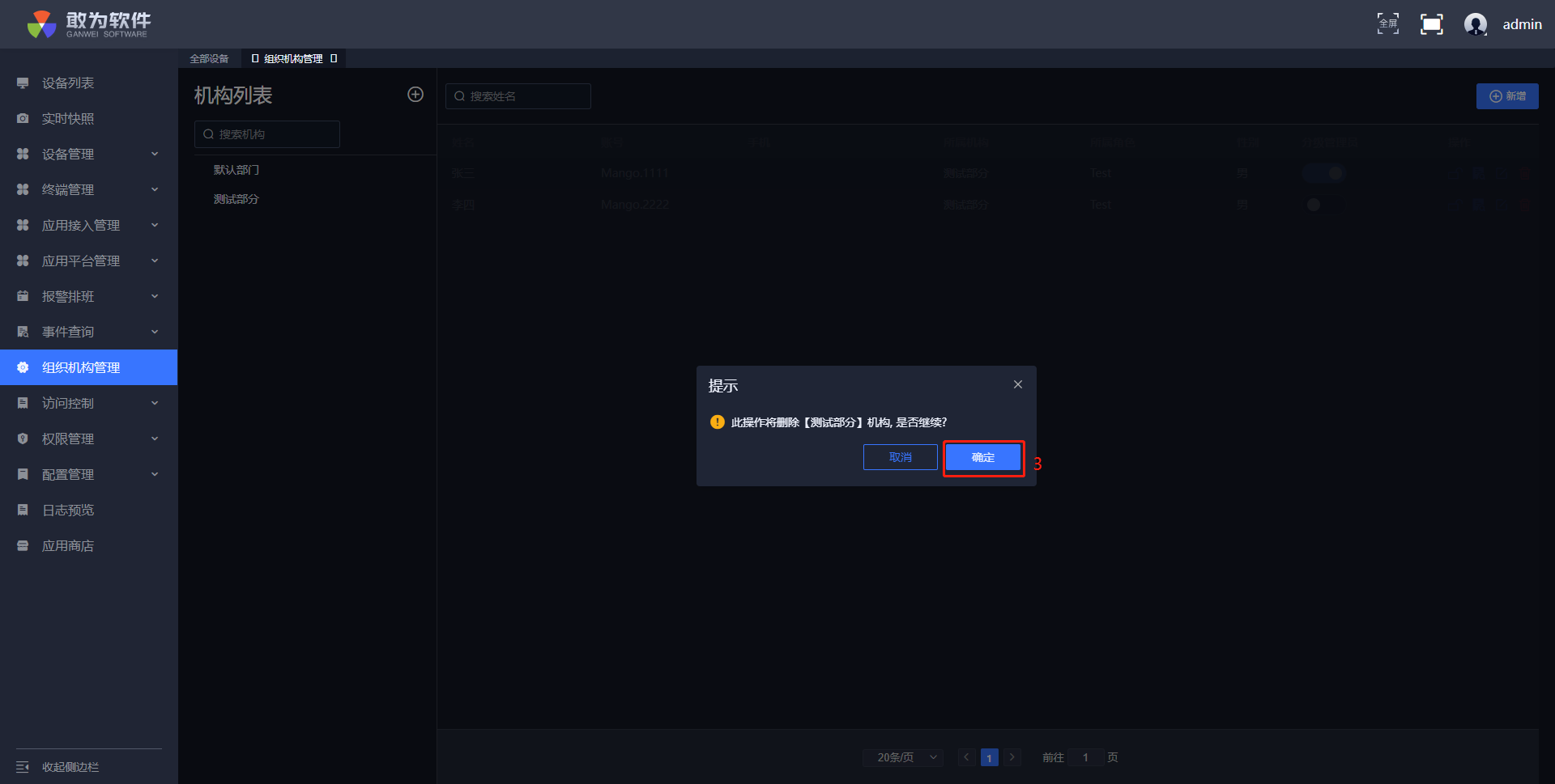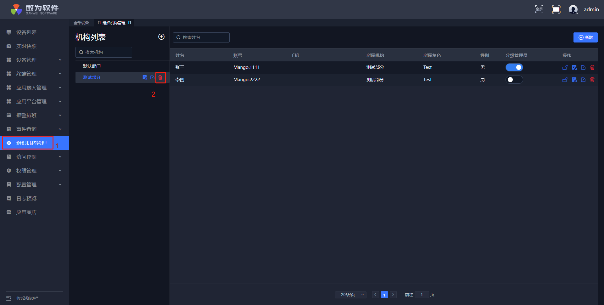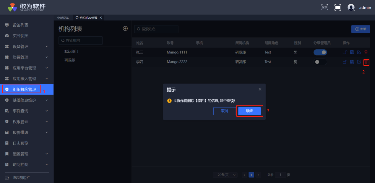 分级管理员只能删除所属机构以及下属机构的人员信息。