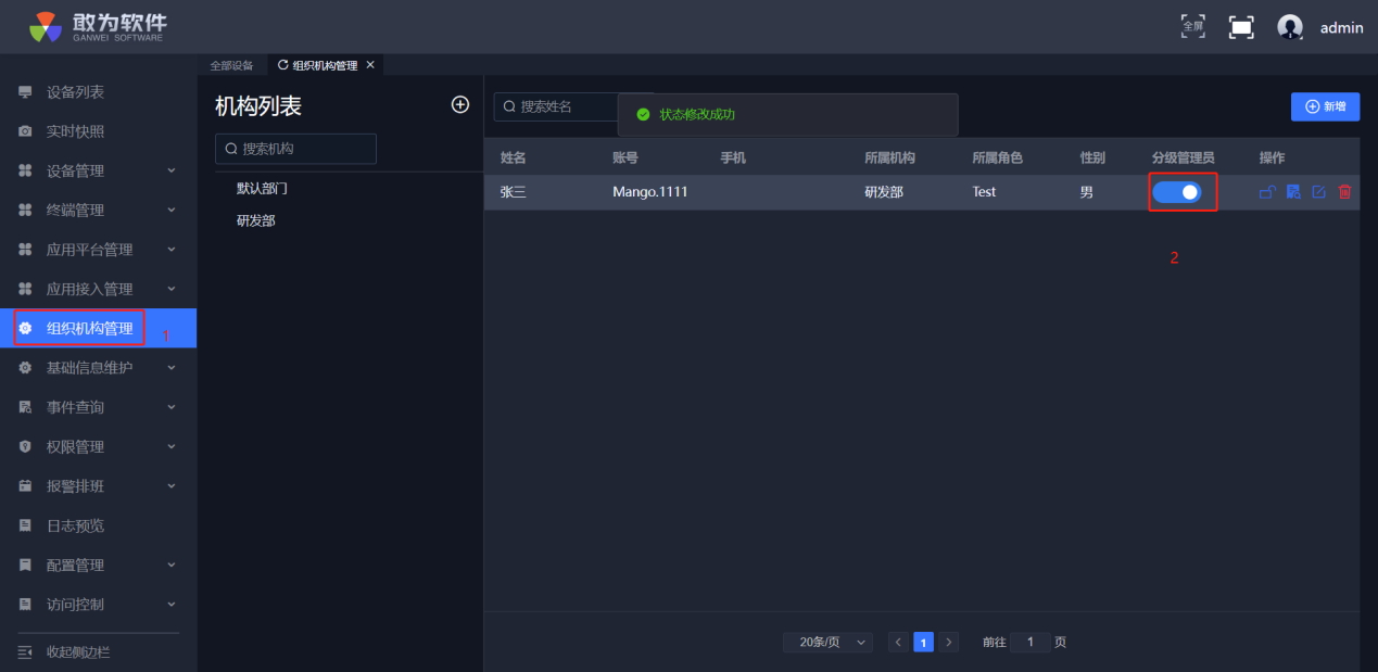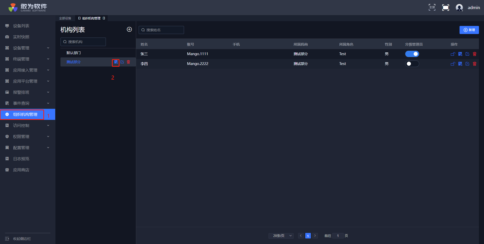 “分级管理员”下图标为蓝色时,表示该人员为分级管理员。