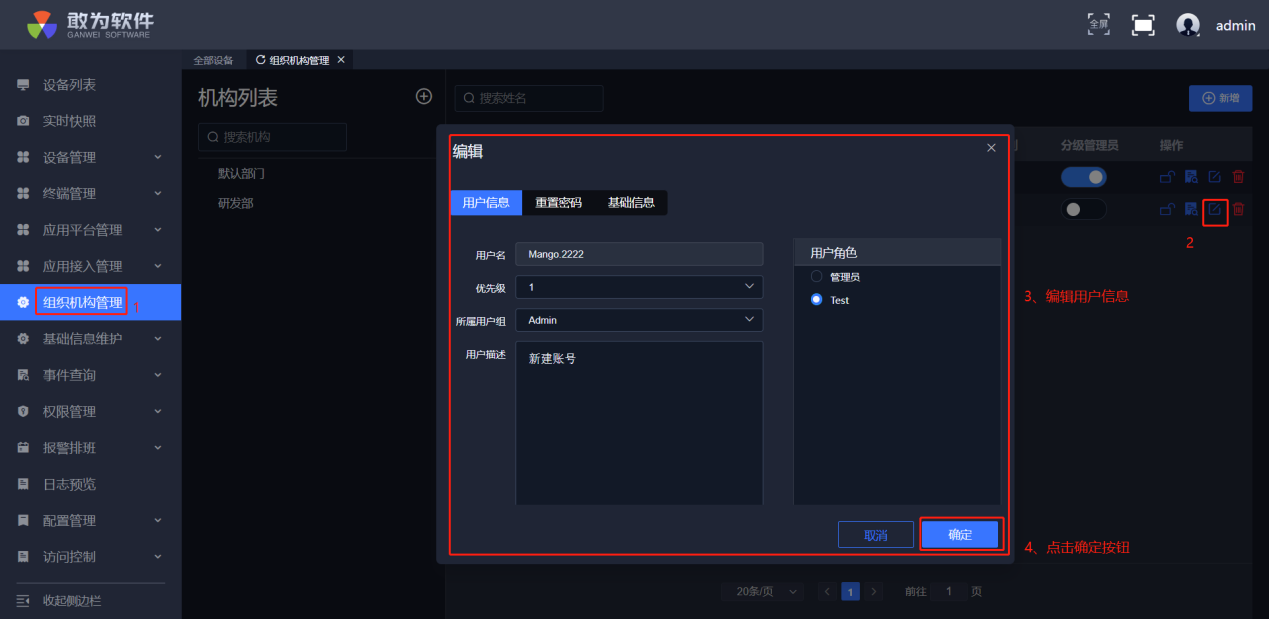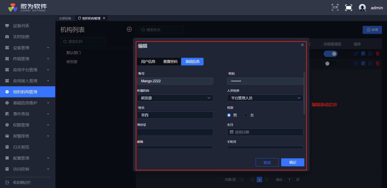 只有管理员才能编辑人员的用户账号信息;分级管理员只能编辑所属机构iji下属机构人员的基础信息;普通用户只能编辑自己的基础信息。