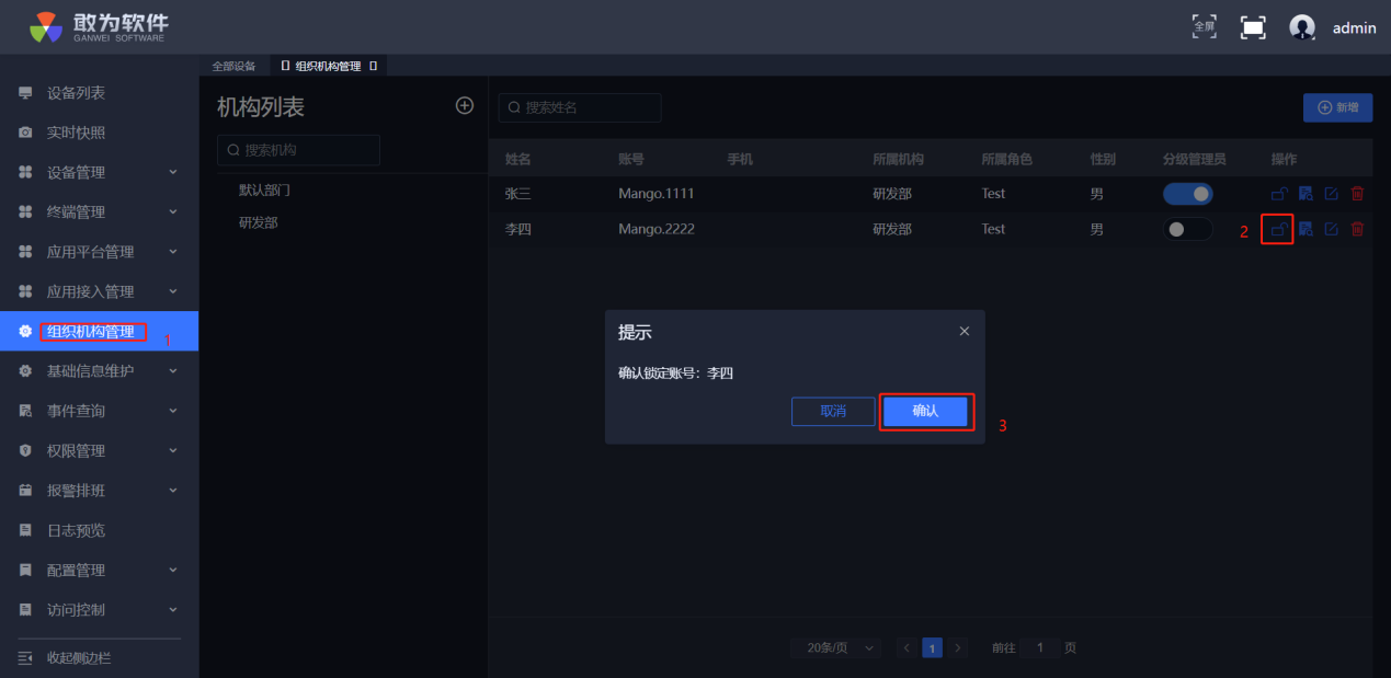 人员管理包含了账号管理的功能,支持新增人员信息、查看人员信息、编辑人员信息、删除人员信息、设置分级管理员、重置密码、账号锁定与解锁。