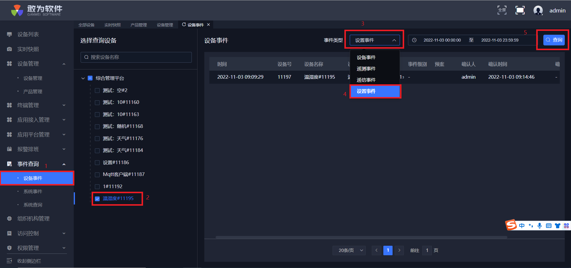 点击确认,可在事件查询中查看到确认信息。
