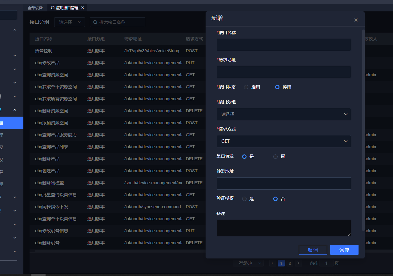 如果涉及到接口集成,如增删改等接口,可以通过命令下发解决,但命令下发为异步方式,可能北向不能实时获取到响应状态,也可以由IoTCenter的北向应用接口管理=》接口转发机制来实现基于iotcenter鉴权的数据转发,包装后的接口还需在ROMA中添加自定义后端接口。