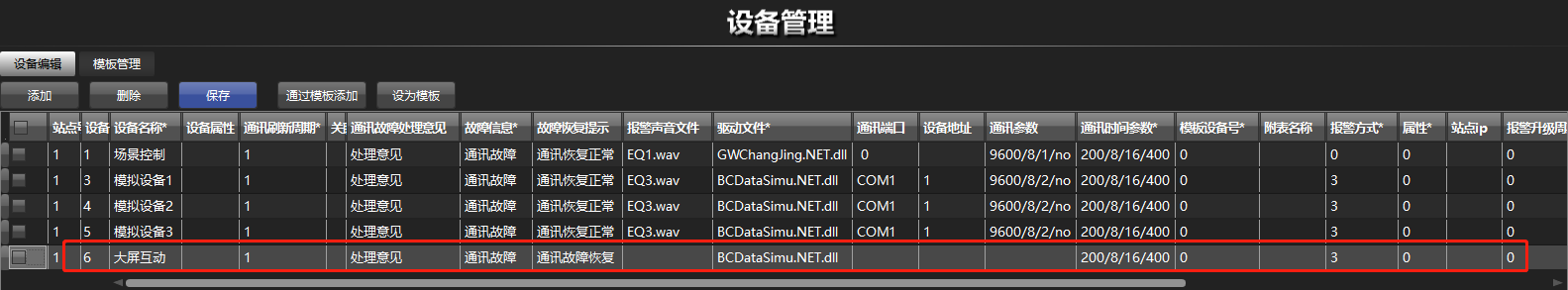 输入完成后点击“保存”按钮,完成“大屏互动”设备的新增。