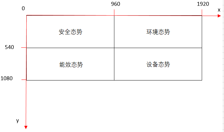 目前大屏的分辨率为1920X1080,根据大屏显示效果图,每一个态势图的大小均为960X540。而每个组态页面对应的Id为:安全态势—2,环境态势--3,能效态势--4,设备态势—5,把组态页面的Id跟“GWEquipPages”表的缩写“EP”组合在一起用来表示组态页面。比如:EP2代表安全态势页面,EP3代表环境态势页面…依次类推。