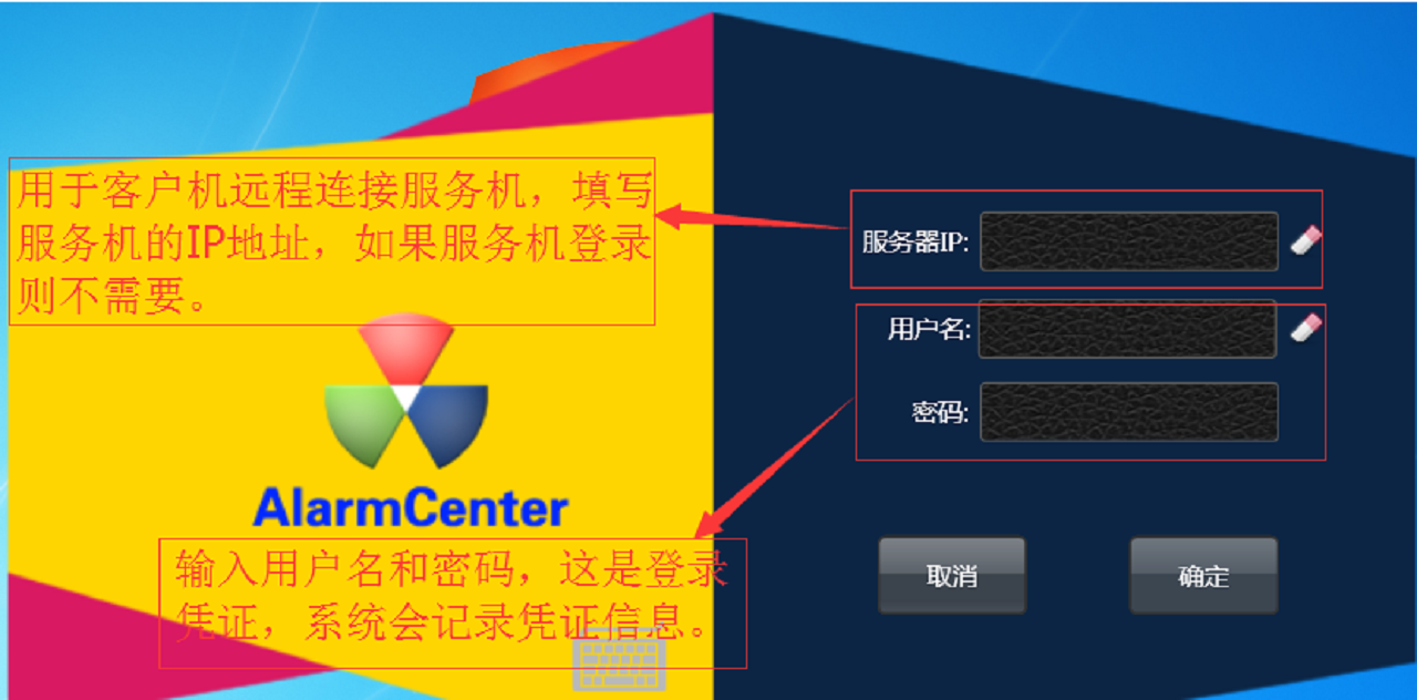 最后启动AlarmCenterService服务,点击桌面Alarmcenter快捷方式登录运行软件。