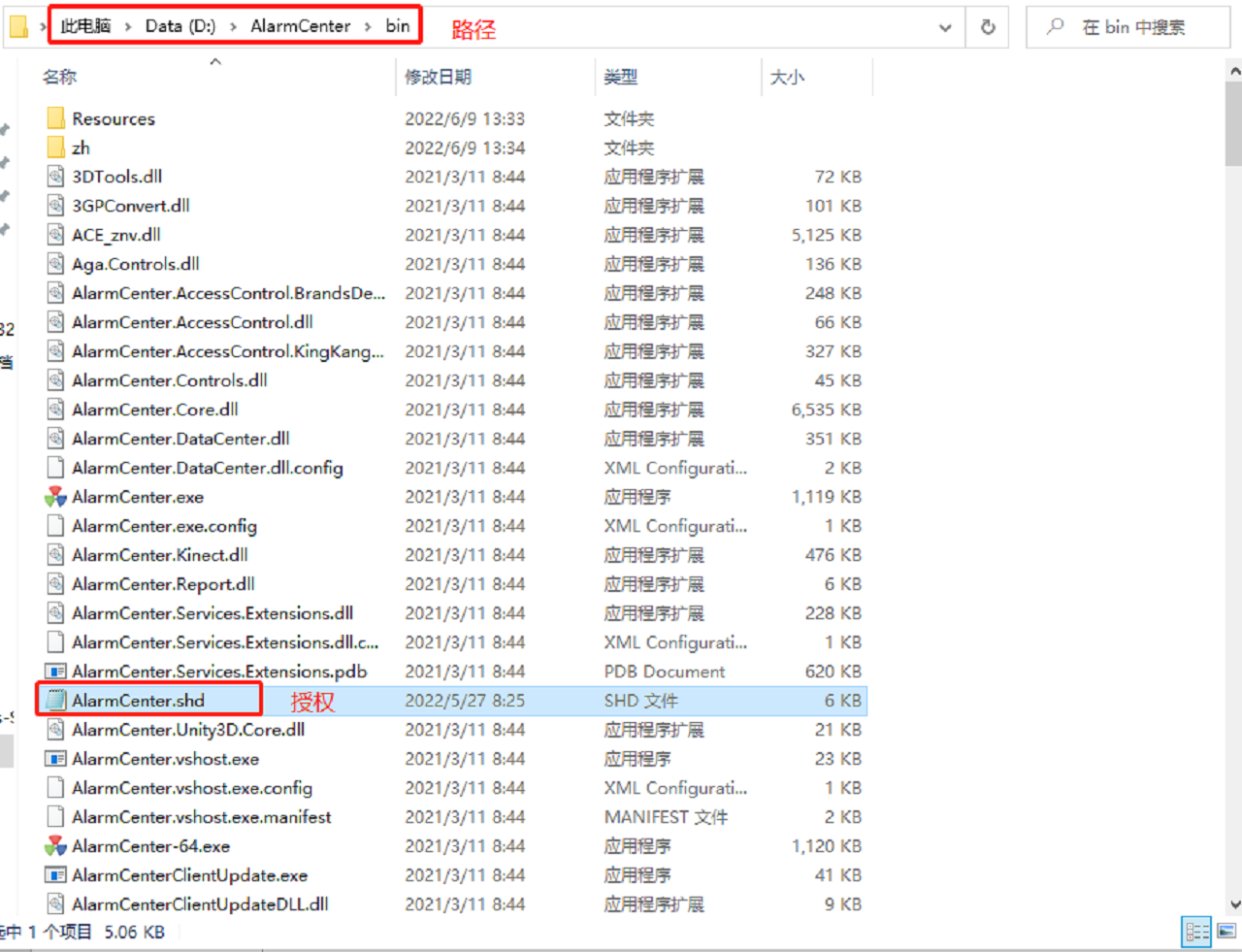 AlarmCenterService服务停止后,把软件授权文件替换到D:\AlarmCenter\bin目录中