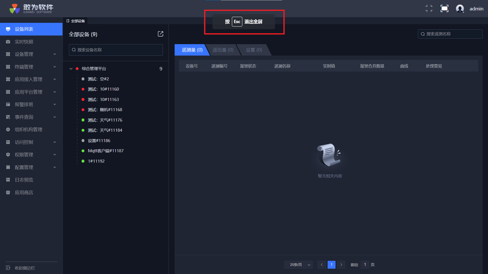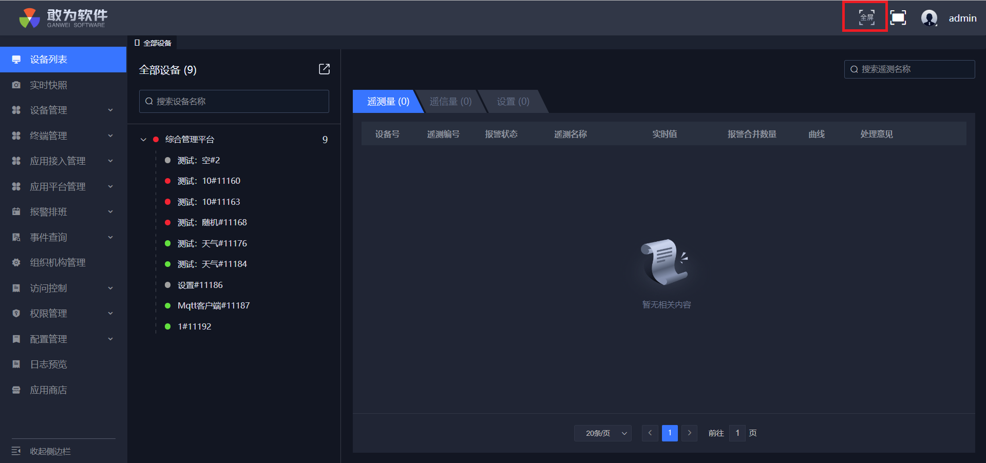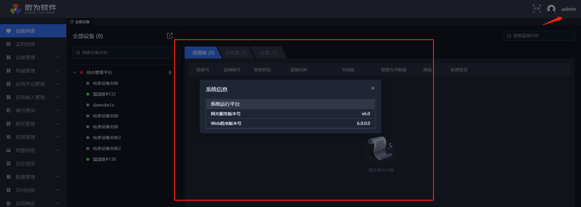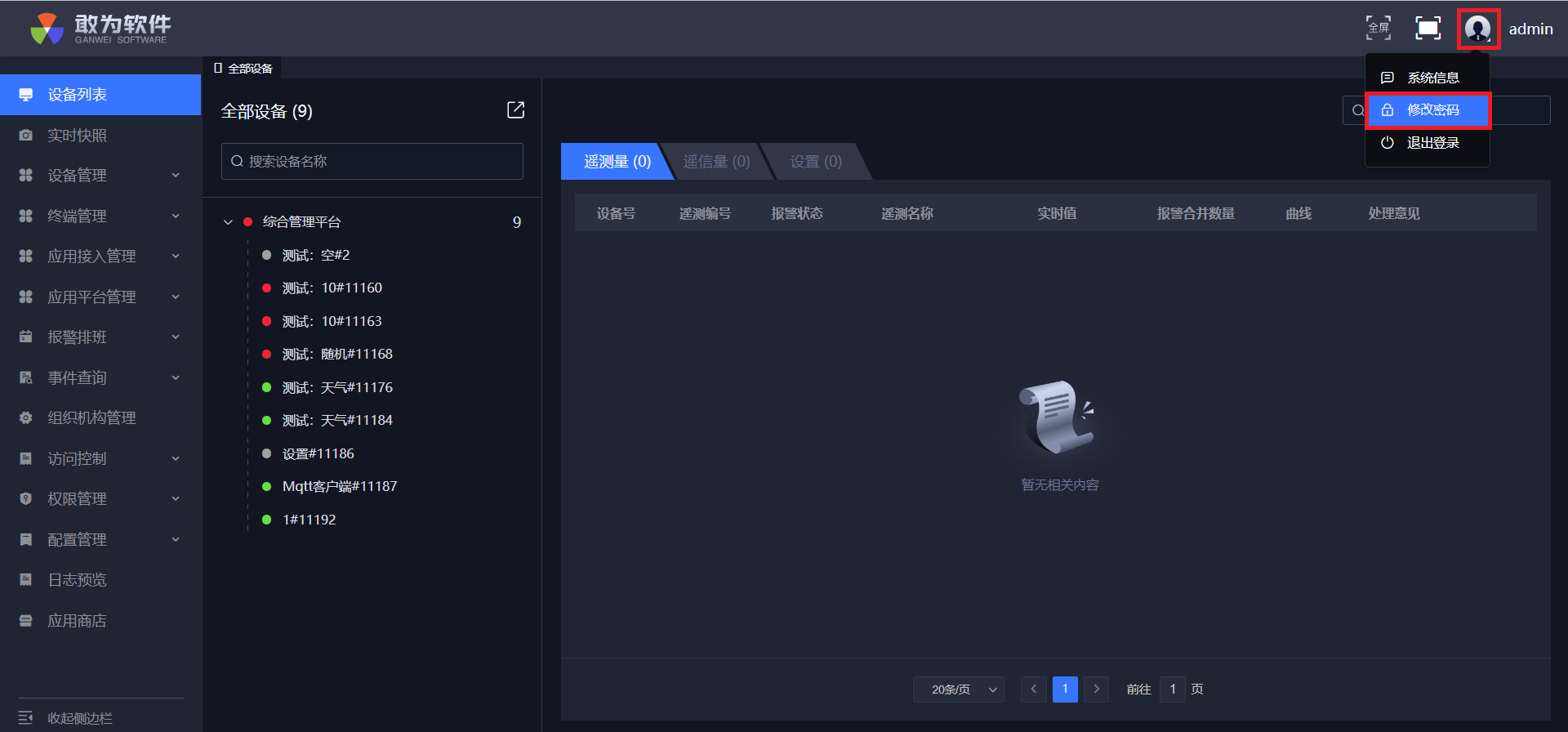 菜单栏支持查看系统运行信息、修改密码、退出登录、收缩导航栏以及全屏浏览。