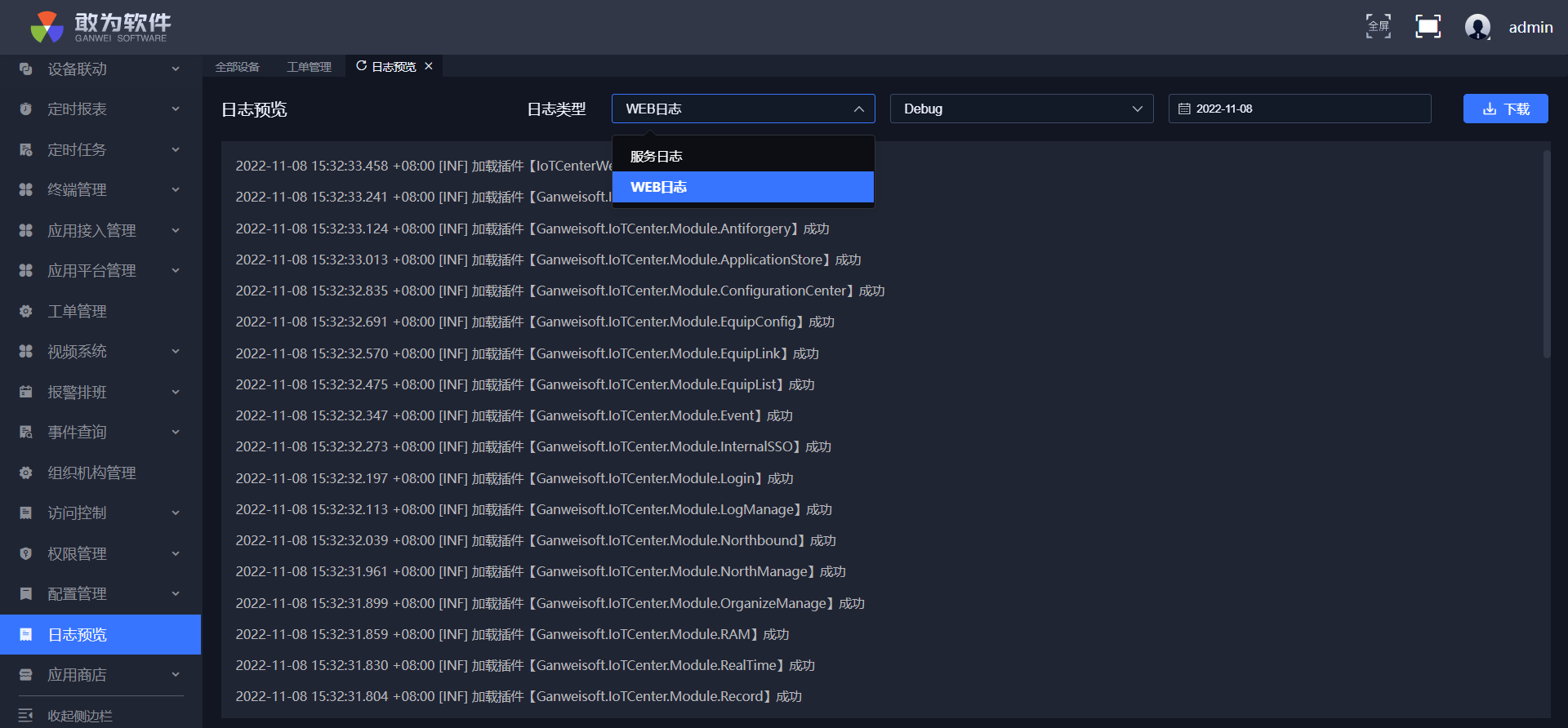 | 2 | 支持下载日志 | 支持下载服务日志信息。支持下载WEB日志的各种类型的信息。 |