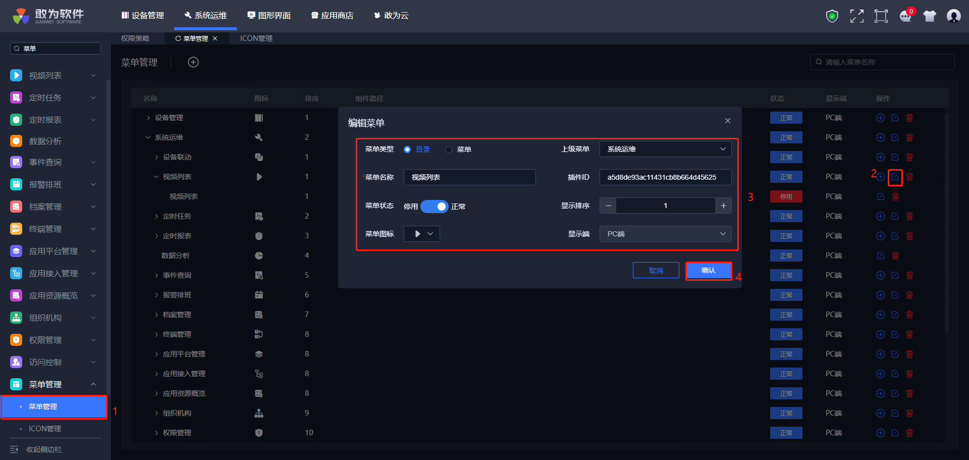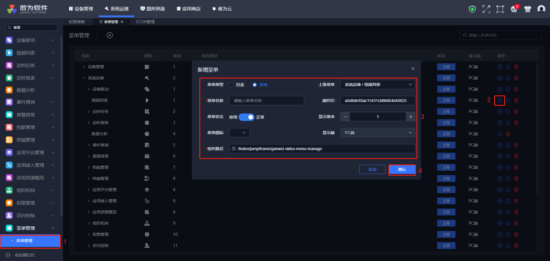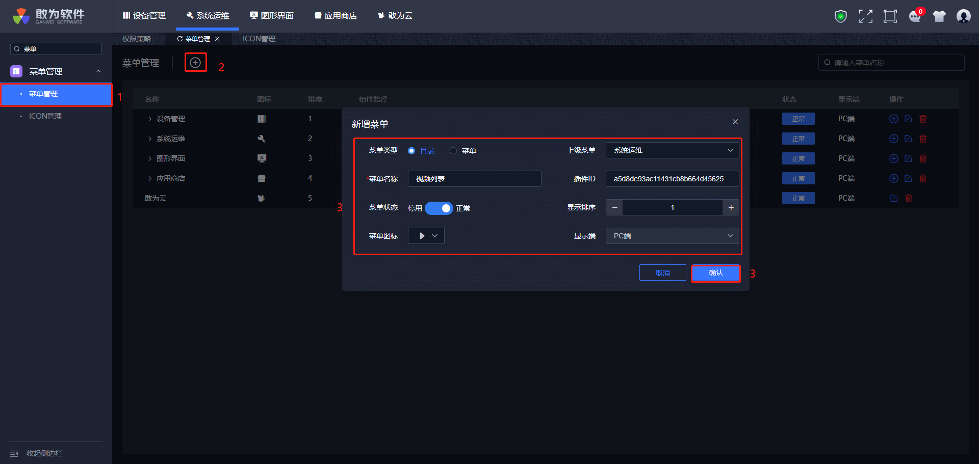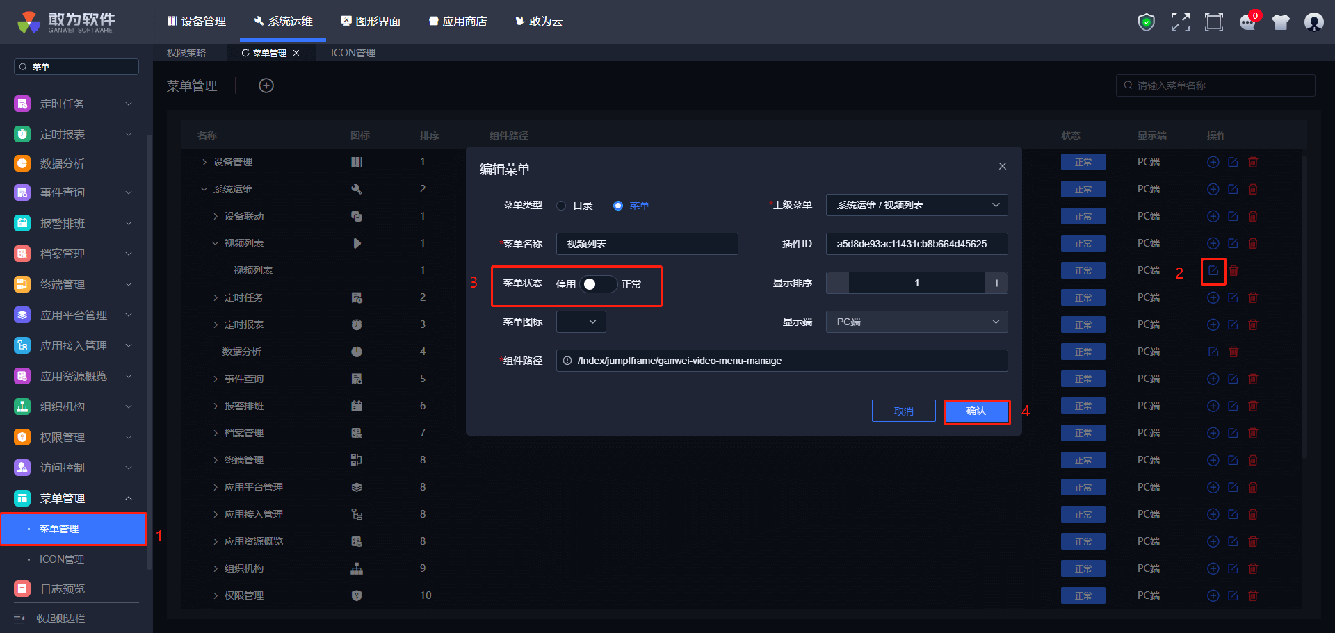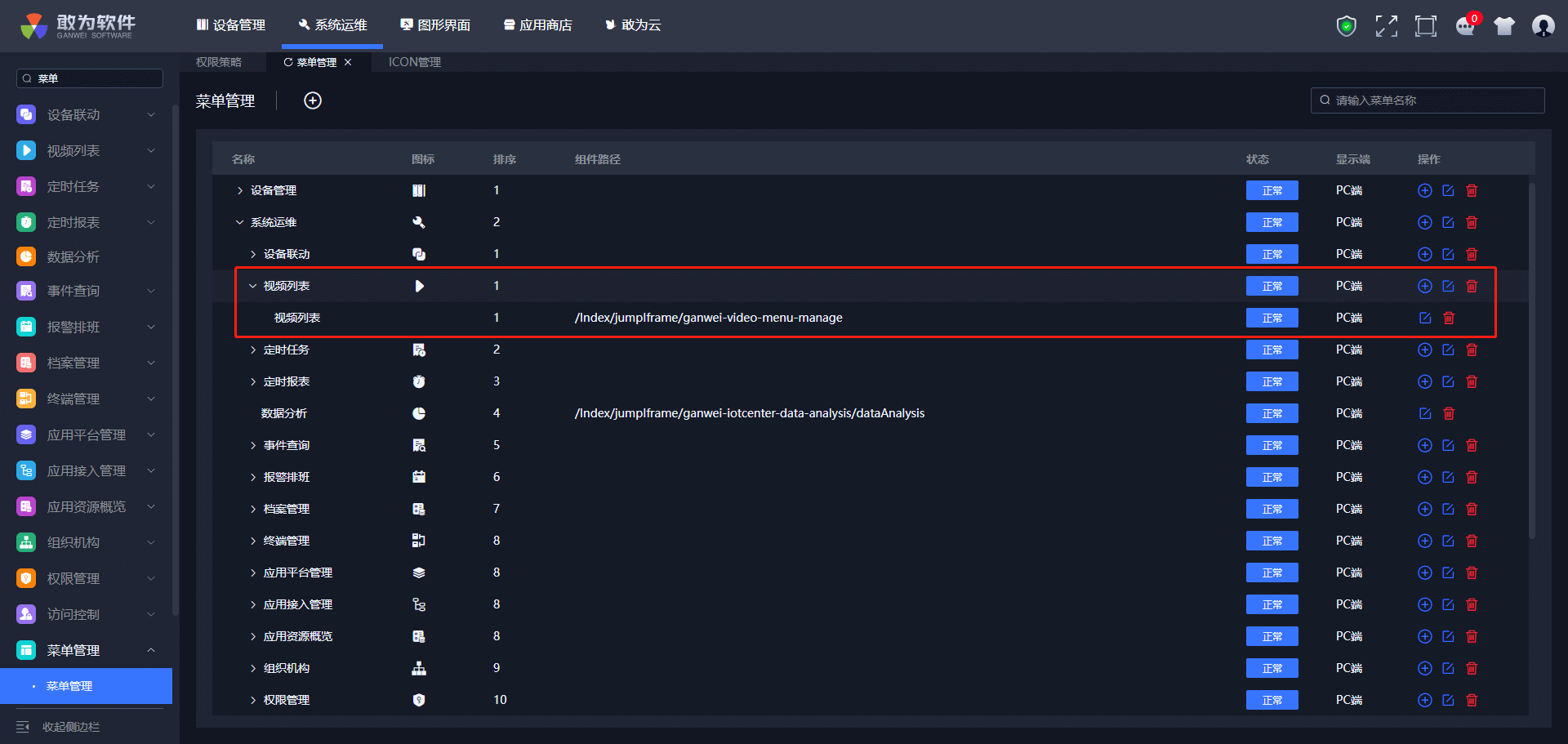 菜单状态 : 如果停用的是菜单则只有该菜单不会显示在左侧菜单栏。停用的是目录则目录下的所有菜单都不会显示在左侧的菜单栏。