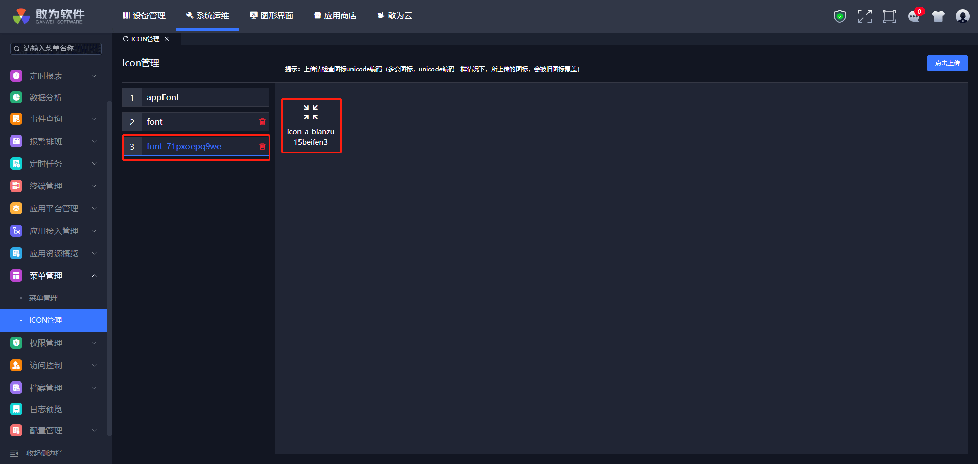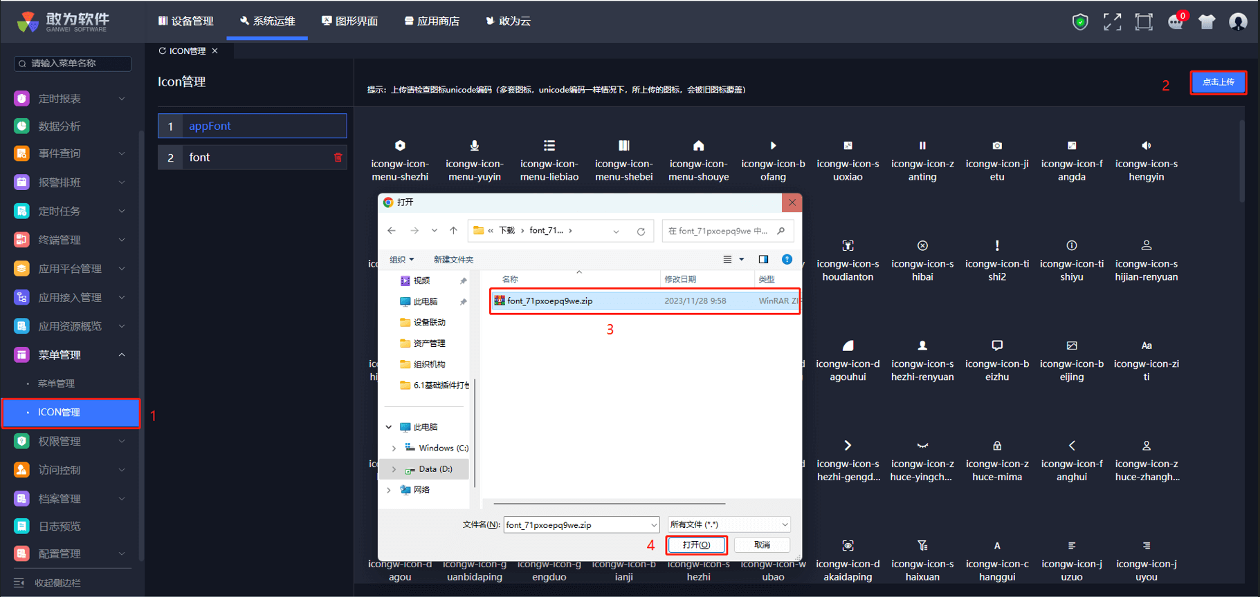 上传成功后列表中会新增一个已压缩包名称命名的选择项,点击即可看到当前文件里面的所有图标。