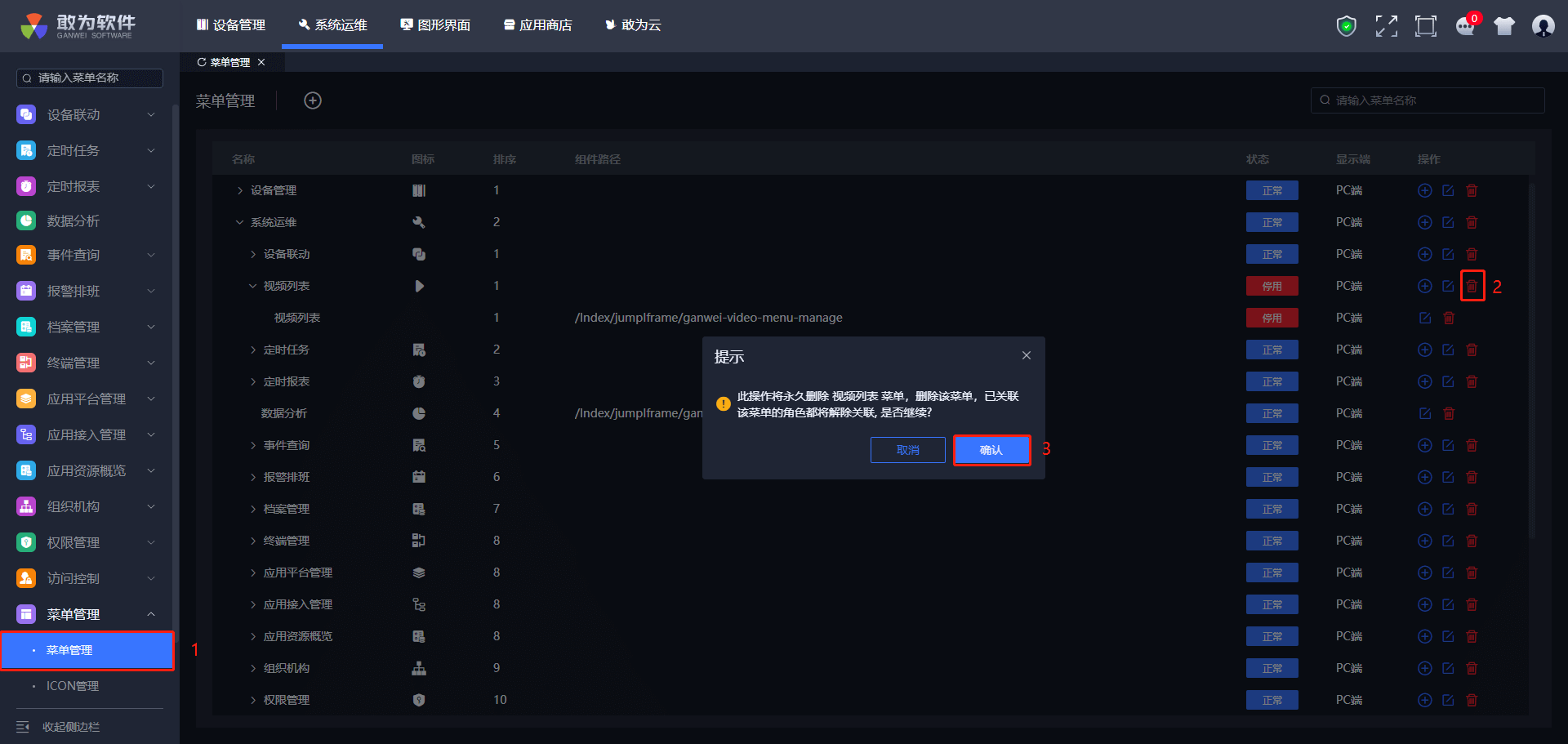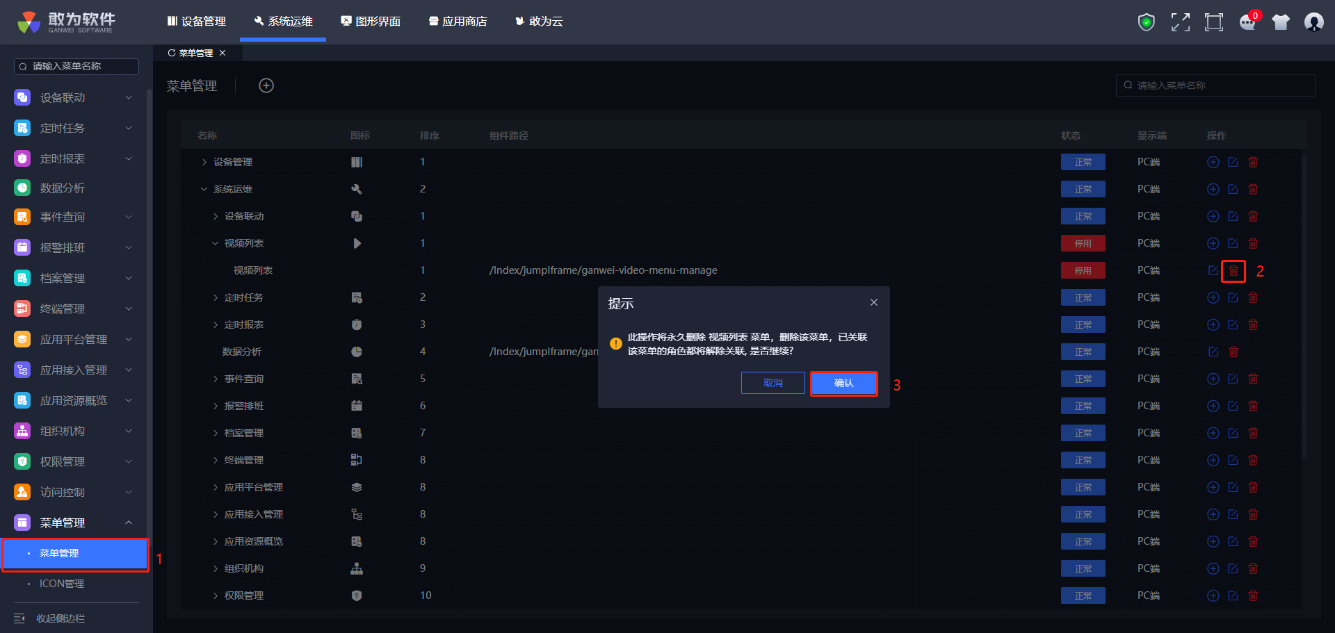 点击确定,左侧菜单列表中对应的菜单会被隐藏。
