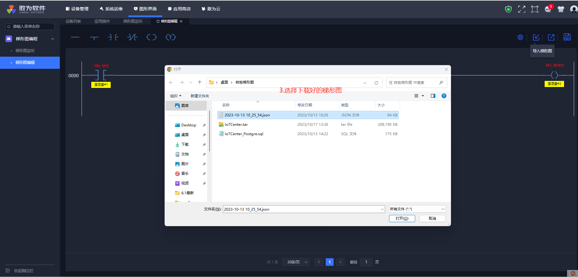 - 导入梯形图保存后会覆盖原有的梯形图。