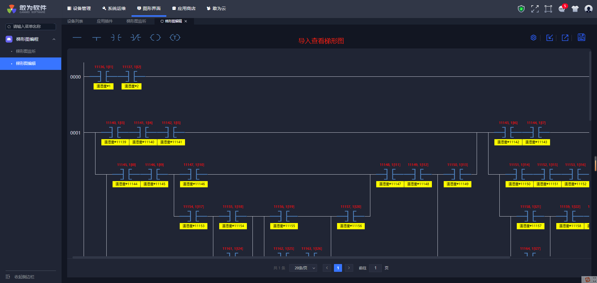 应用商店中安装PLC扩展插件和梯形图编程最新版本,然后重启服务。