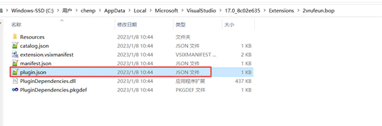 例如:C:\Users\chenp\AppData\Local\Microsoft\VisualStudio\17.0_8c02e635\Extensions\1xh3hlj5.3vg