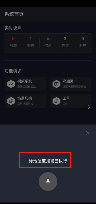 语音控制格式说明:最后的@@@表示遥信设置,其它参考遥测设置。必须输入语音“泳池温度报警”才会触发设置