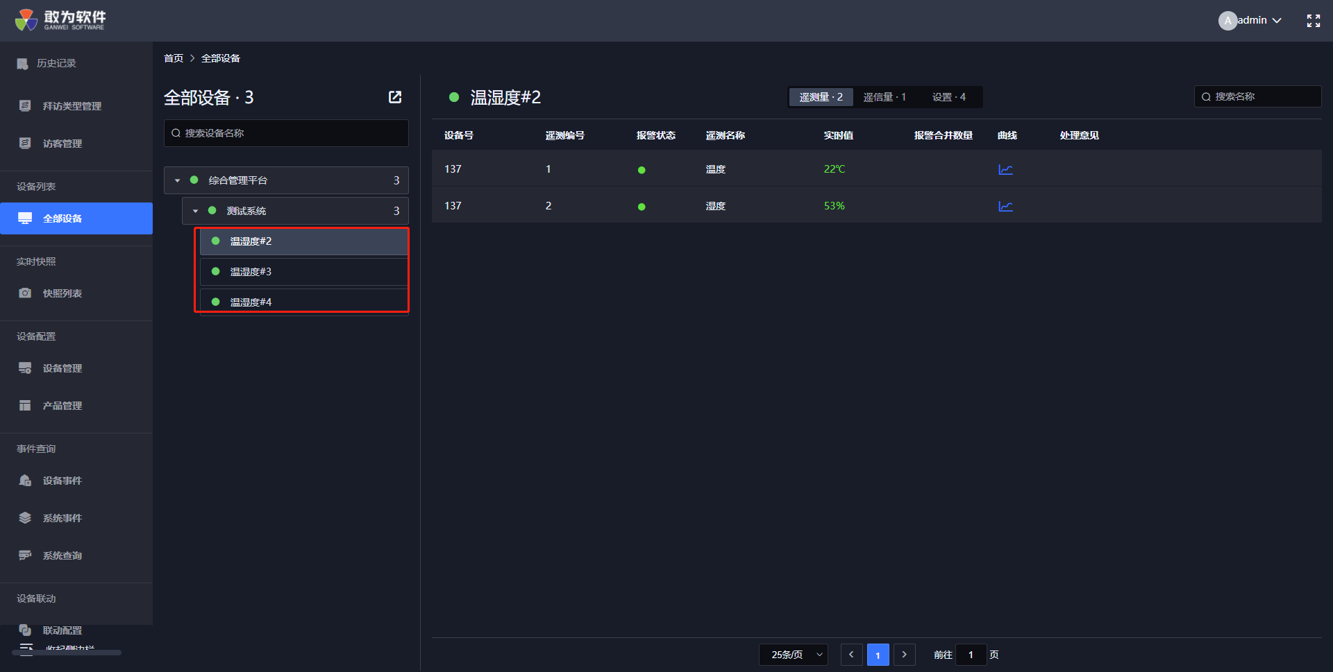 在“设备列表”中可以查看到“温湿度#2”设备的温度测点变为了88