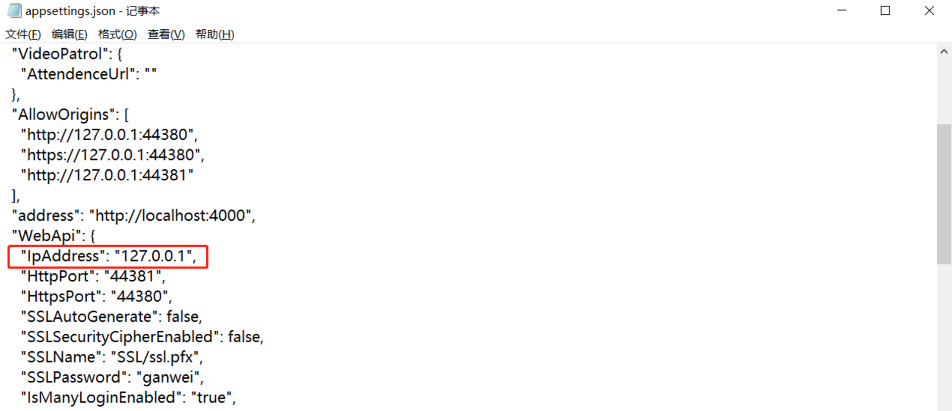 如果出现以上情况,可前往修改配置文档IoTCenterWeb\publish\appsettings.json